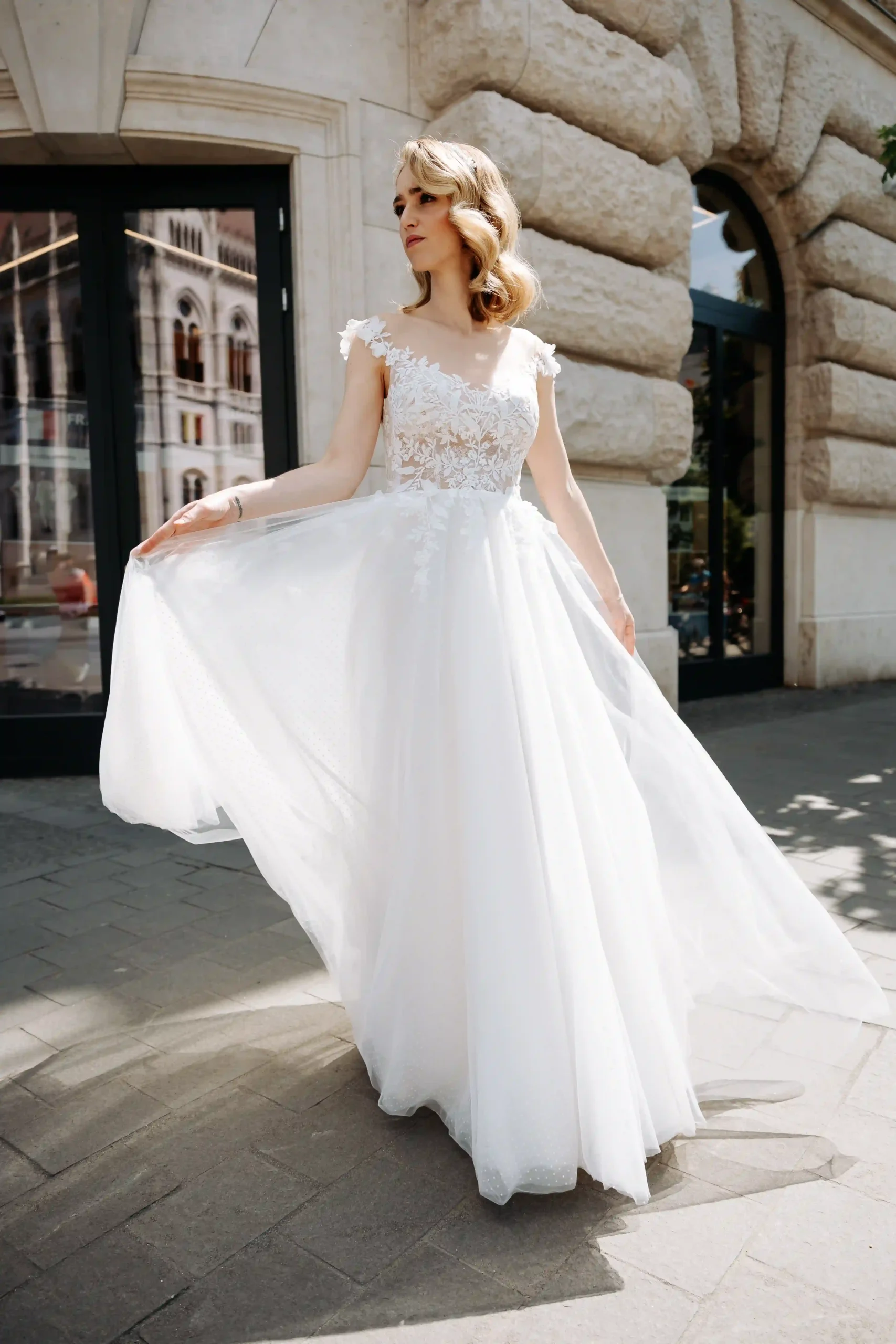 Enyhén zártabb modell mely szabásának köszönhetően nagyon jól formáza a testalkatot. Szonya réasze pöttyös, slicces. Nálunk egy élményt is kapsz a ruhapróbád mellé!