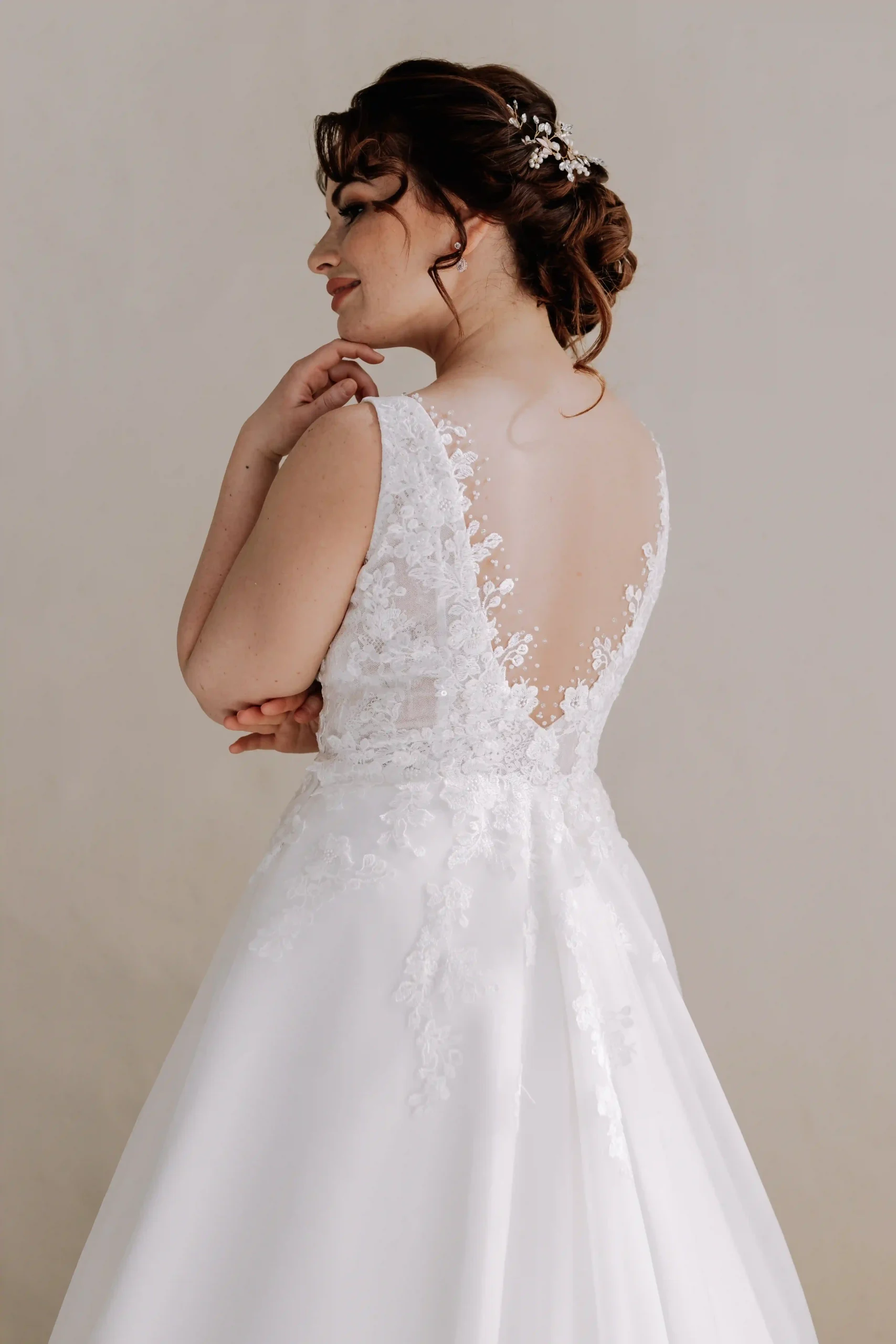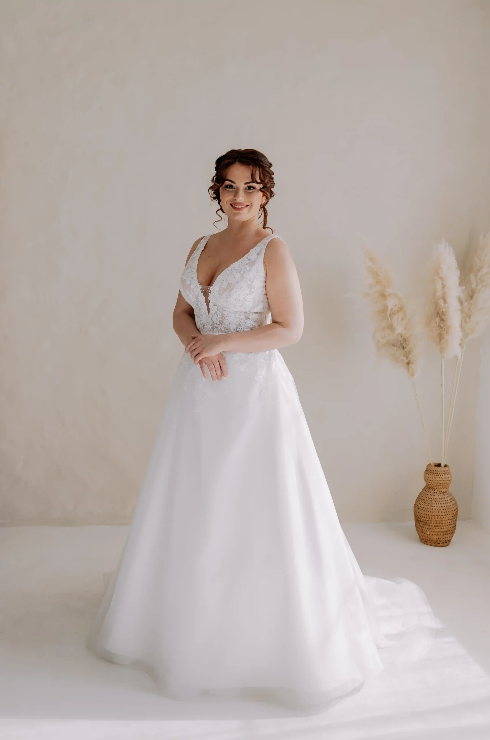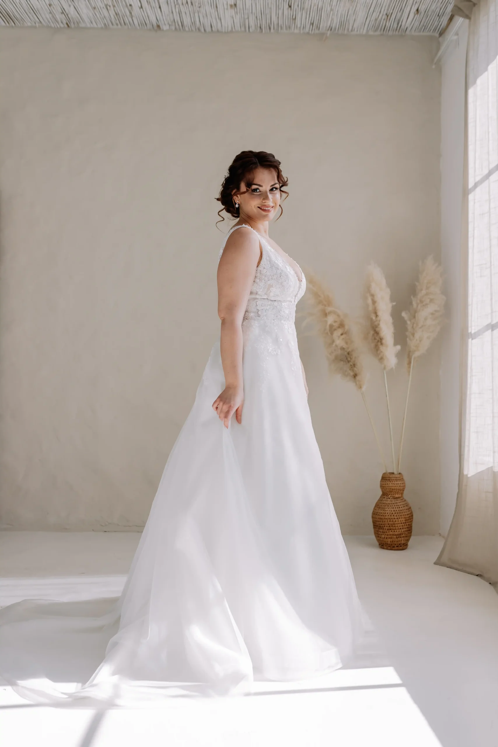 Klasszikus A vonalú ruha. Egyszerűsége ami leginkább mutatóssá varázsolja ezt a ruhát. Enyhe gyöngyözése, szolid csillogása bájossá varázsolja ezt az esküvői ruhát. Nálunk egy élményt is kapsz a ruhapróbád mellé!